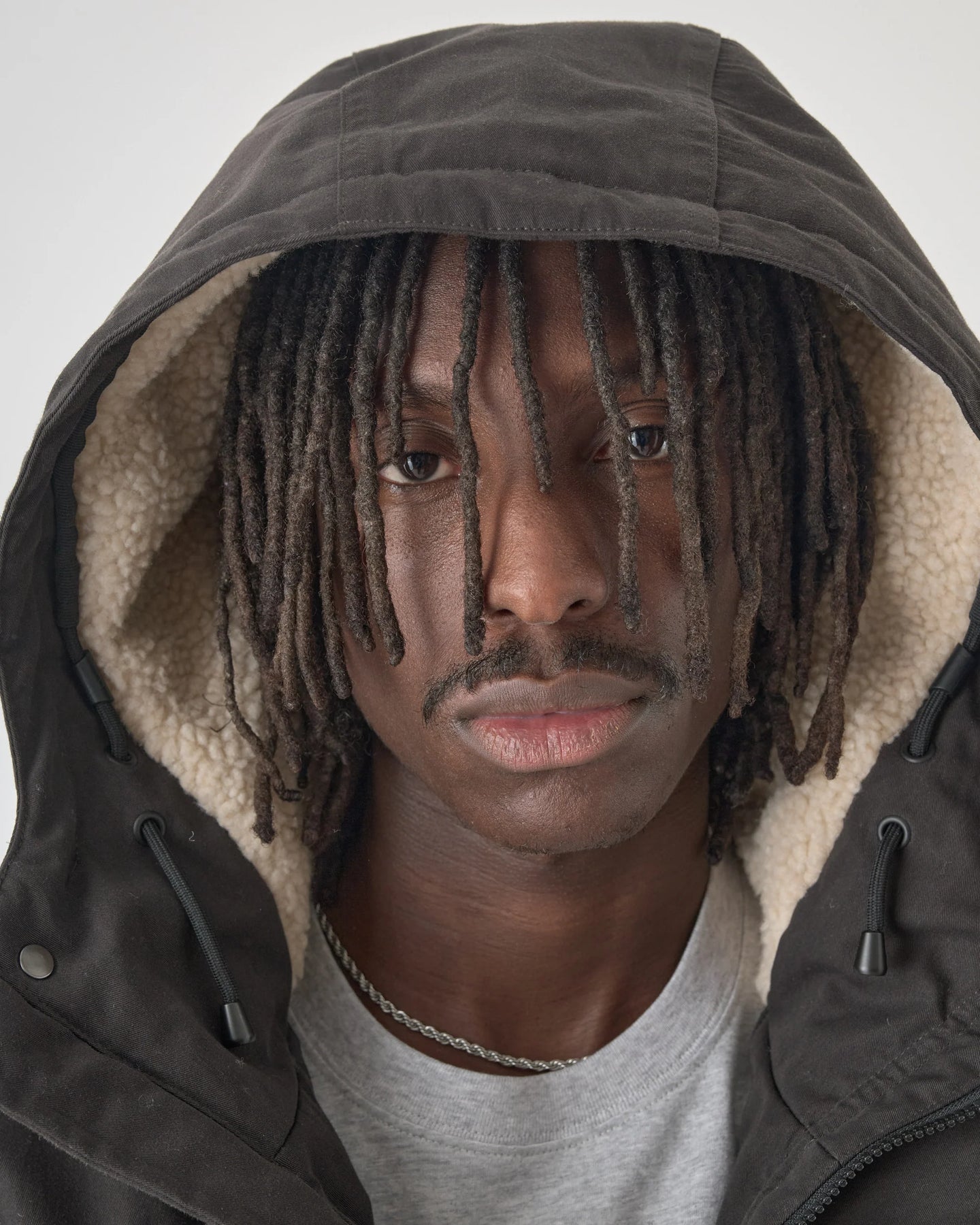 Eine Winterjacke mit Kapuze, langem Schnitt und Teddy Fütterung ist in der Tat eine echte Winterjacke