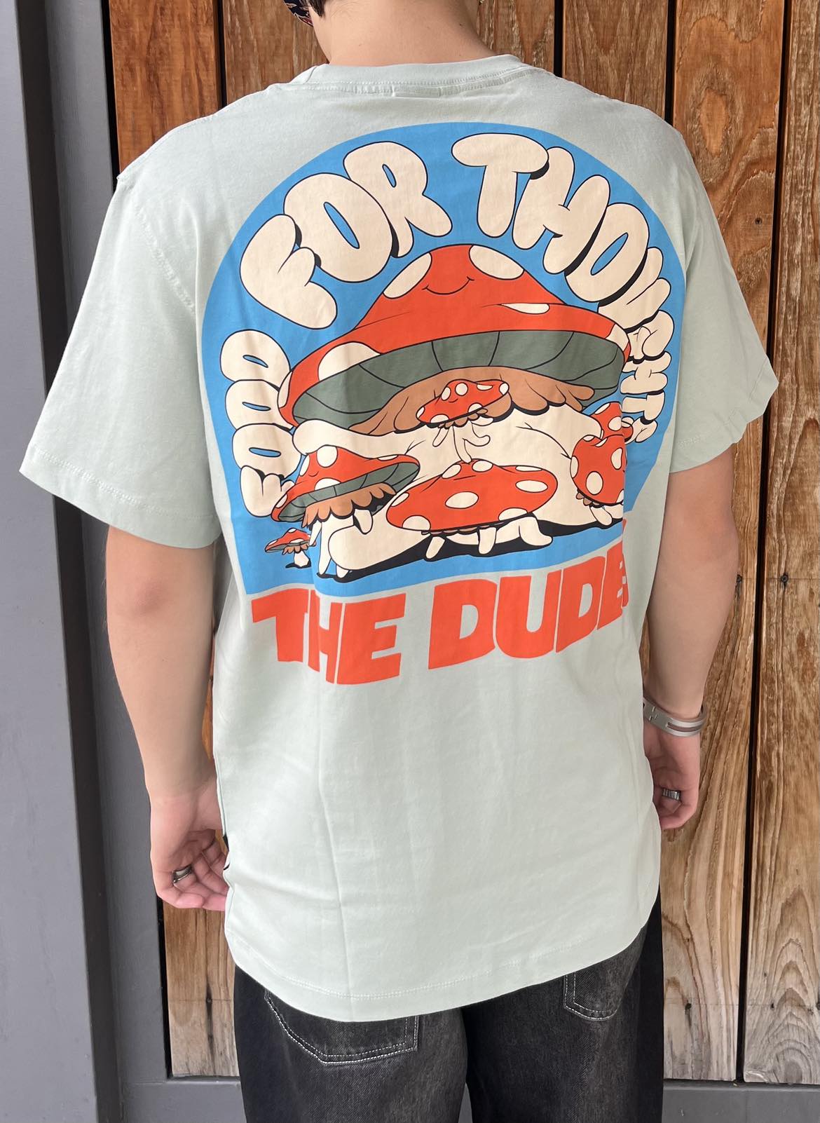 Woven neck and side Dudes label.
